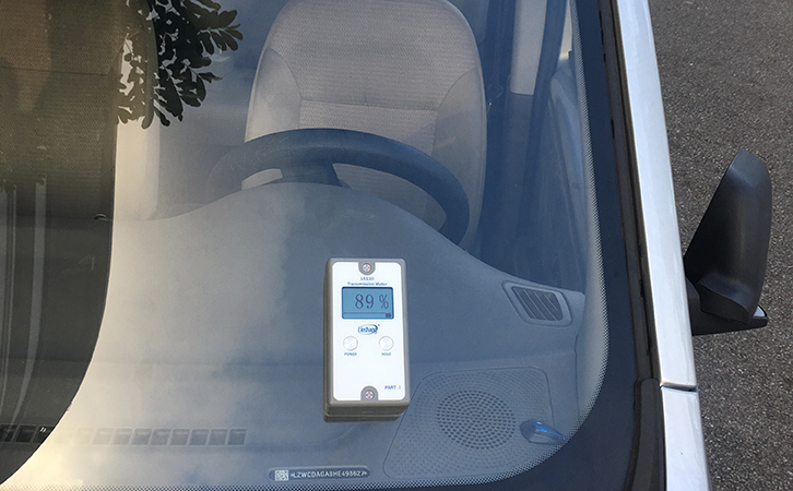檢測汽車前檔透光率更適合用林上LS110透光率儀,這是專門檢測汽車前檔玻璃透光率的儀器,很多交警大隊,車檢站都在使用這款儀器。