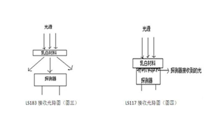 透過率定義即透過光強除以入射光強乘以百分之百。為什么測透過率還要分鏡面材料和乳白色材料呢?下面用LS117乳白材料透光率儀和LS183透光率儀測試乳白材料來舉例說明。